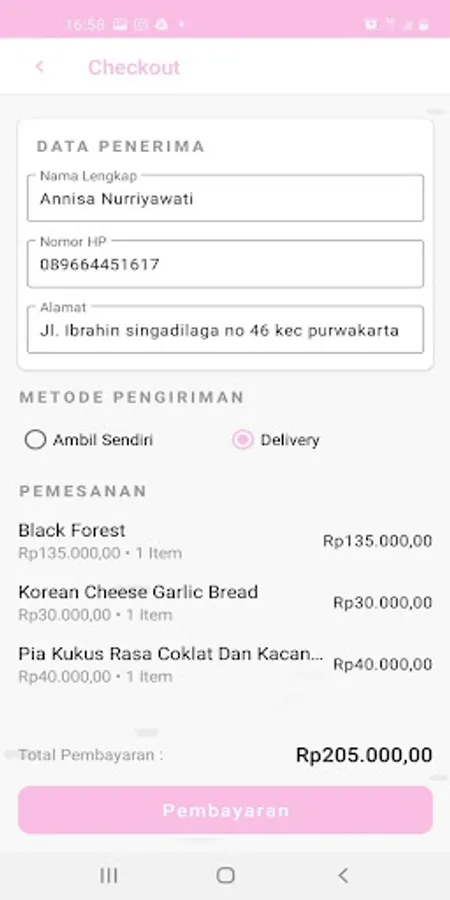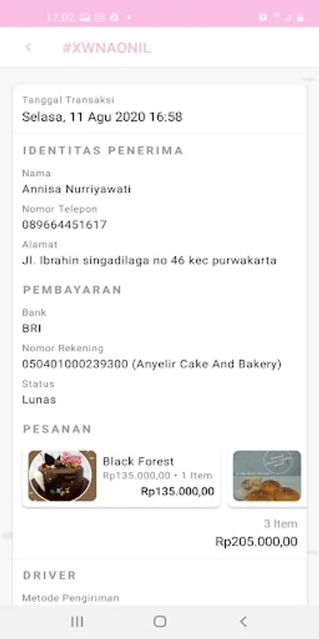 cake models and can see the status of the cake order. can choose the method of taking yourself or delivered by the driver.