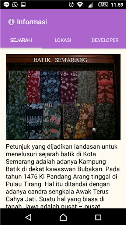 This application contains the information about Kampung Batik Semarang and products that are in there. And there is the media buying and selling online so that users can use to order products which are in Kampung Batik Batik Semarang.