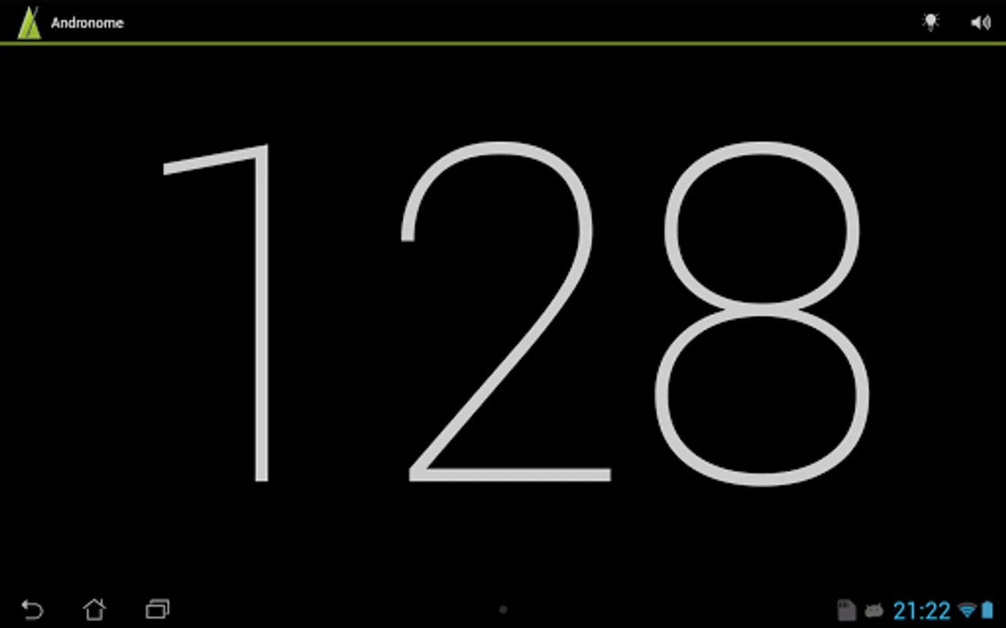 * Sound on/off is controlled on the action bar. Adjust the tick sound using the volume controls of the phone (Andronome play through the standard media channel).