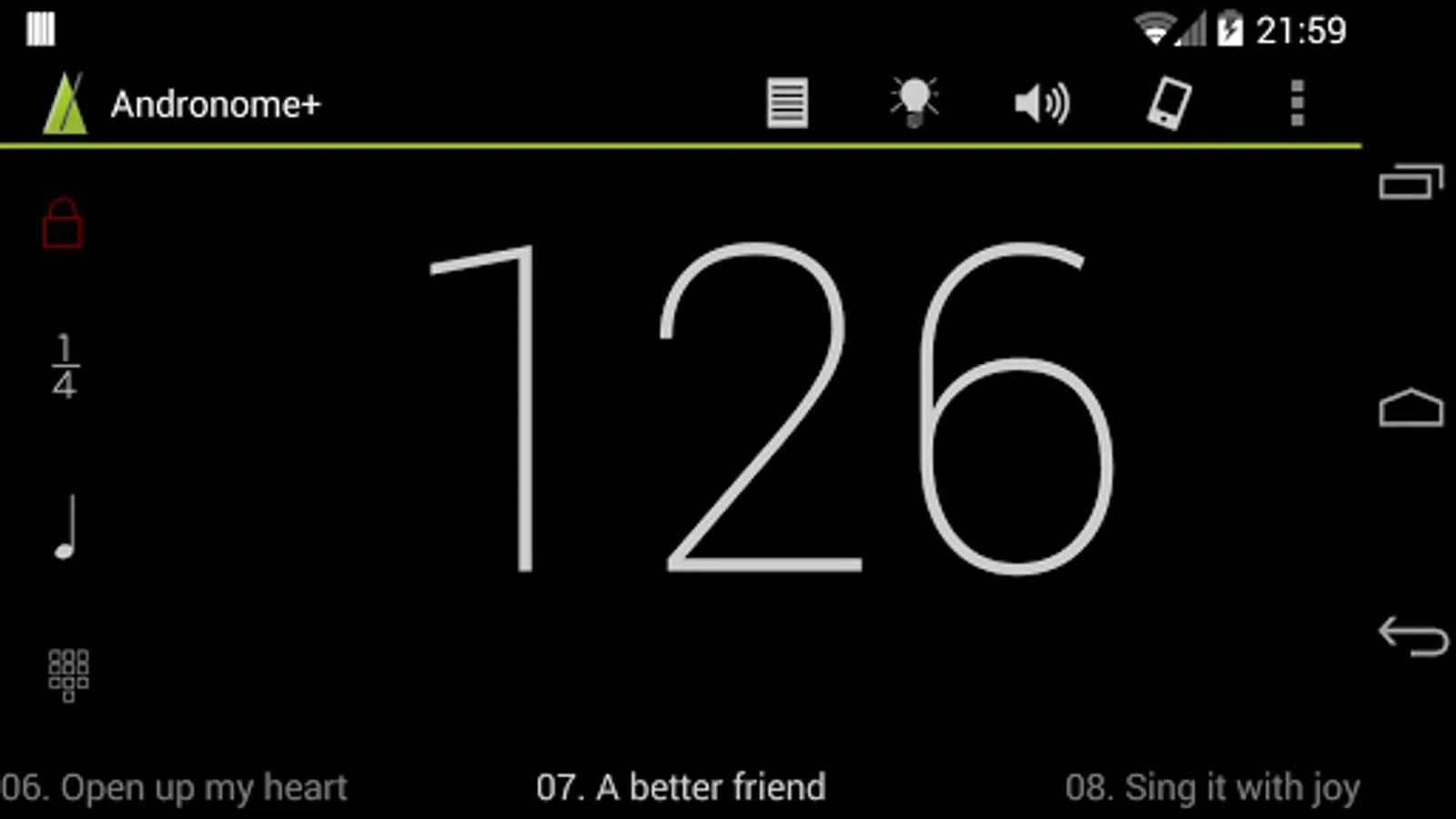 * The beat vibrator and the visible indication (screen blink) can be individually enabled and disabled in the action bar.