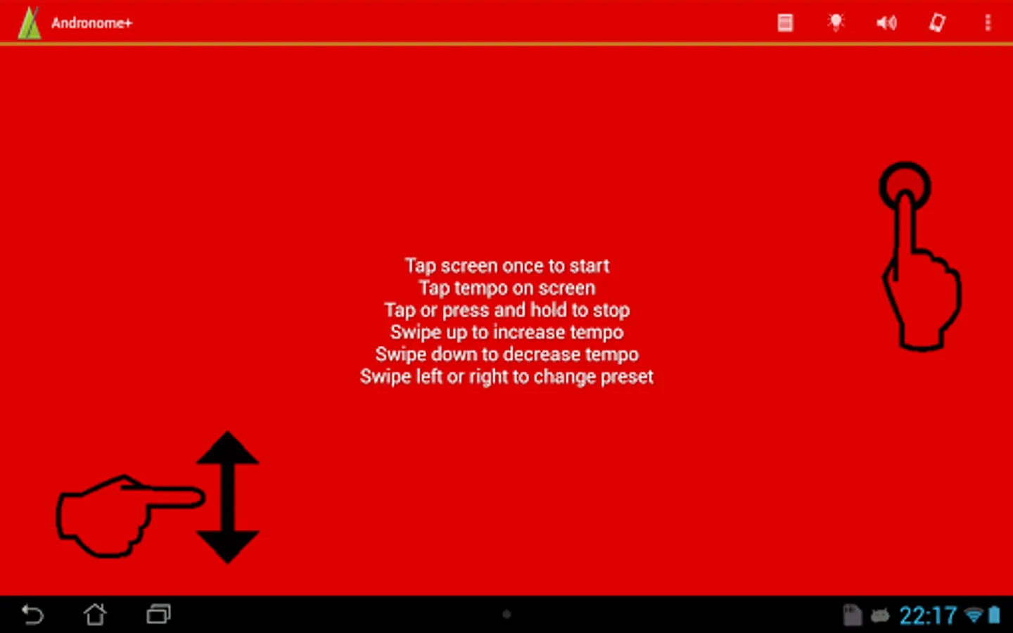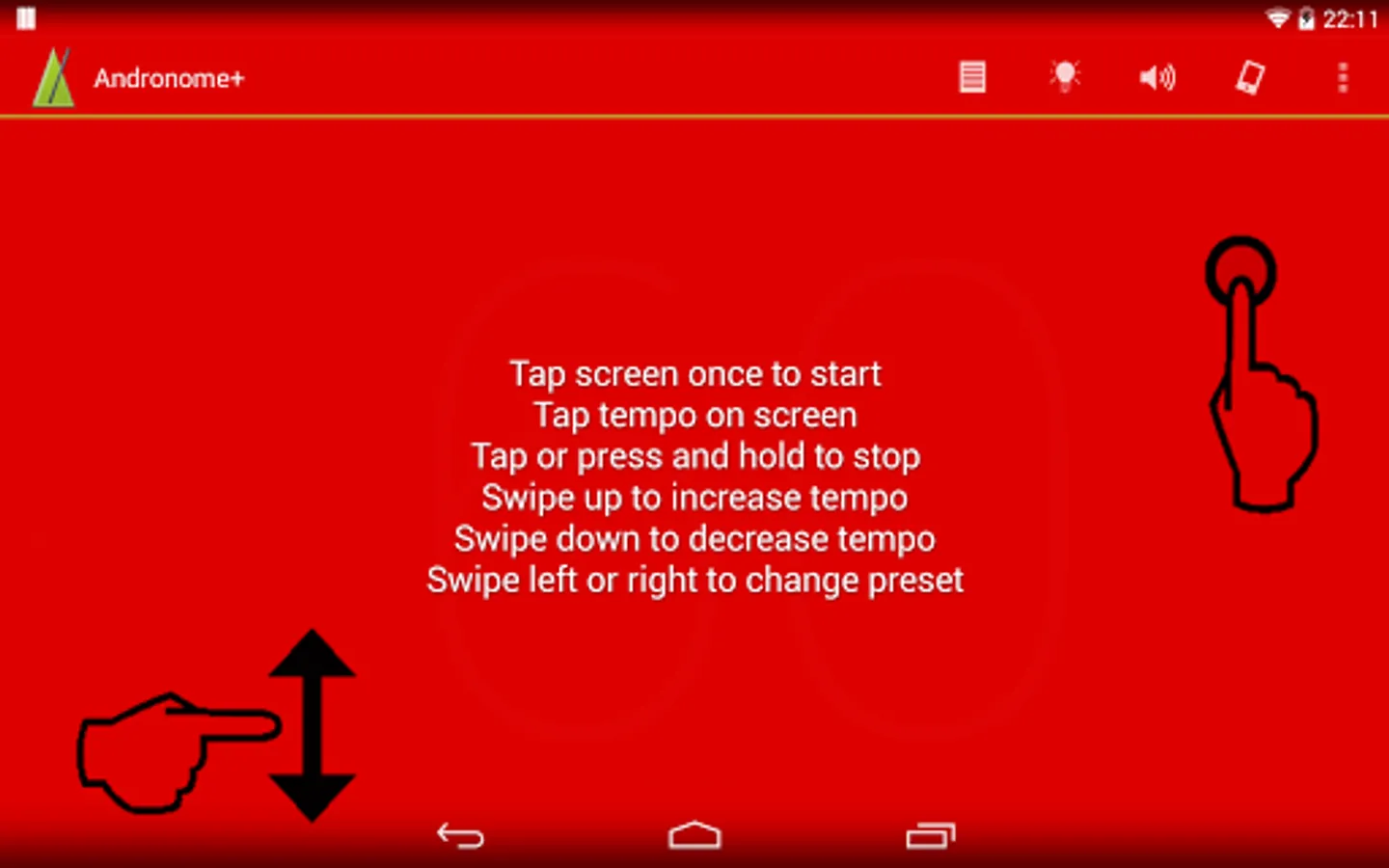 * Tap or long press (touch and hold) the screen to stop the metronome.