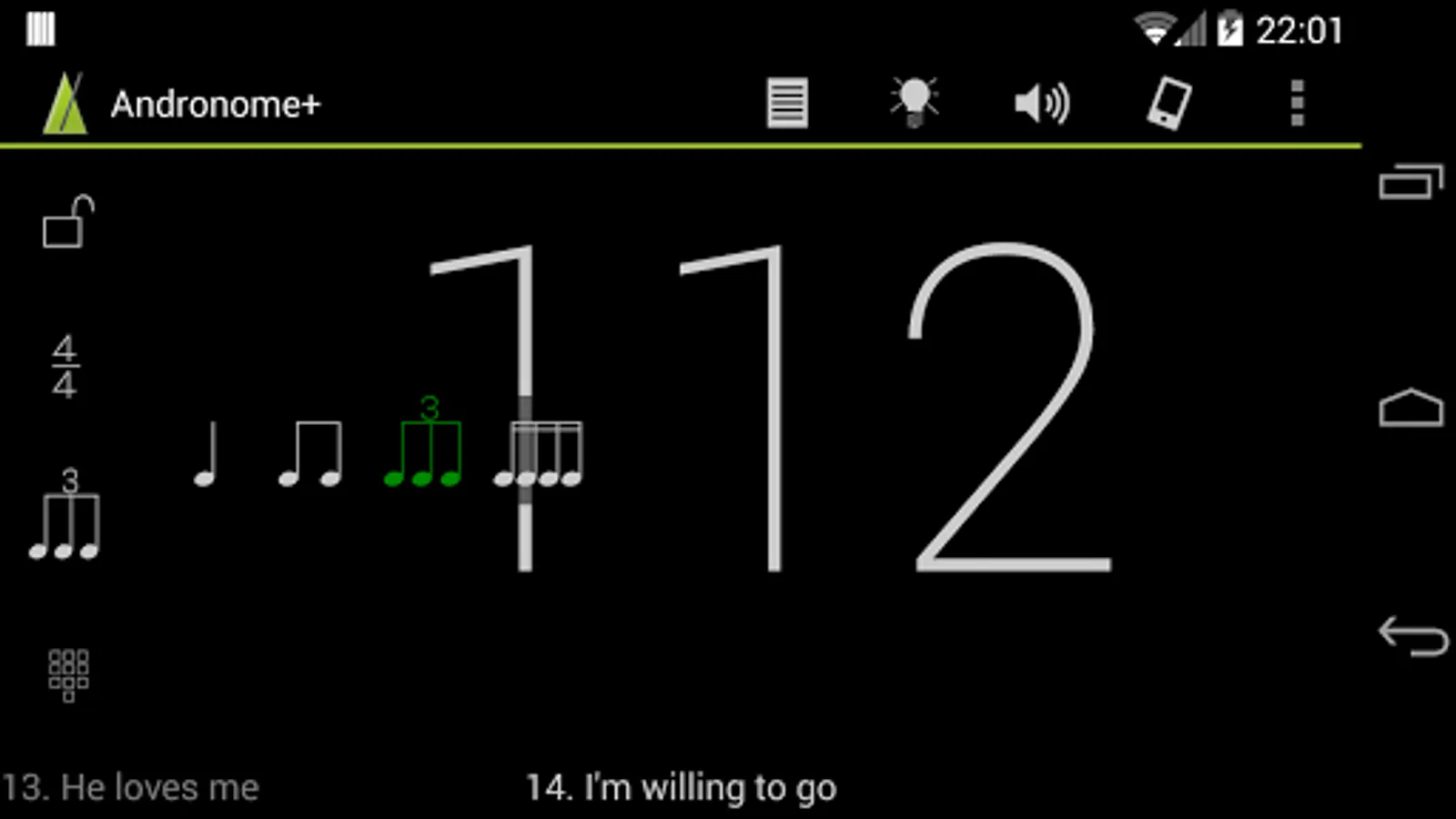 * Tap the tempo on the screen, Andronome will adjust to the tapped tempo.