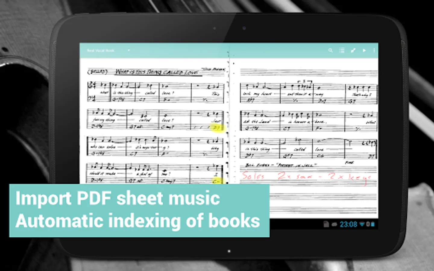 Designed for the gigging musician, Fakebook Pro features smooth page changes, instant search results, easy to use setlists. And it is the most reliable and stable sheet music reader app available, no strange permissions, no in-app purchases and no internet access needed at the gig.