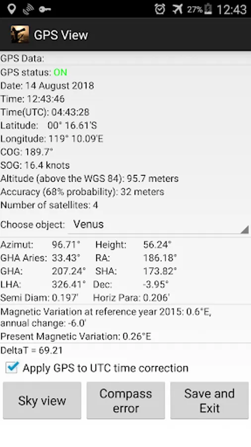Nautical almanac – calculates azimuth, height and other celestial almanac information for Sun and Moon, primary navigation stars and navigation planets: Venus, Mars, Jupiter, Saturn.