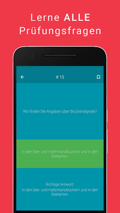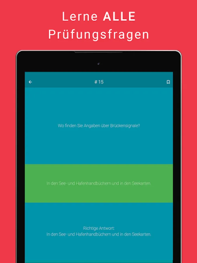 Our app contains the official exam questions with the officially correct answers, just like in the exam. Since the correct answer must be noted in free text (stick points are allowed) in the exam, we also offer a free text answer option. In this way, you are optimally prepared for your theoretical examination for the sport coast ship license.