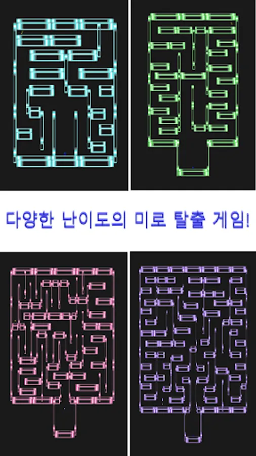 각각의 맵에는 다른 크기와 모양의 미로가 있습니다. 당신이 미로에서 더 많이 나올수록, 그것은 더 어려워집니다.