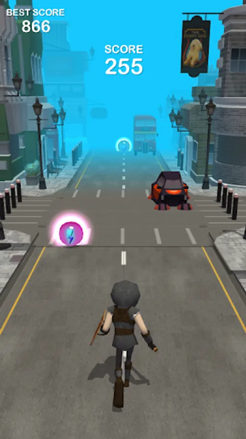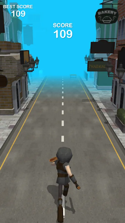 A chase in a nice city. There are dangerous obstacles and cars in the city. Survive long enough to avoid them!