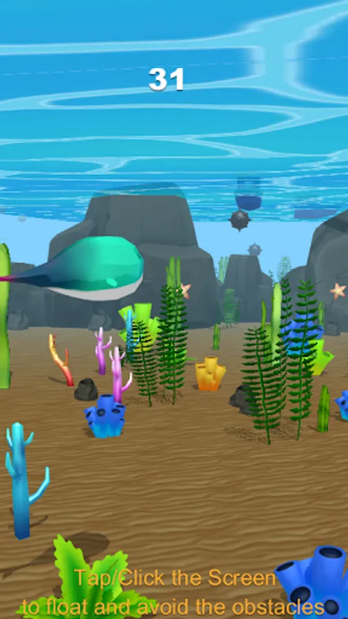 It's a game that lasts a long time avoiding obstacles on the sea floor. Seaweed, submarines, ships, bombs, all obstacles.