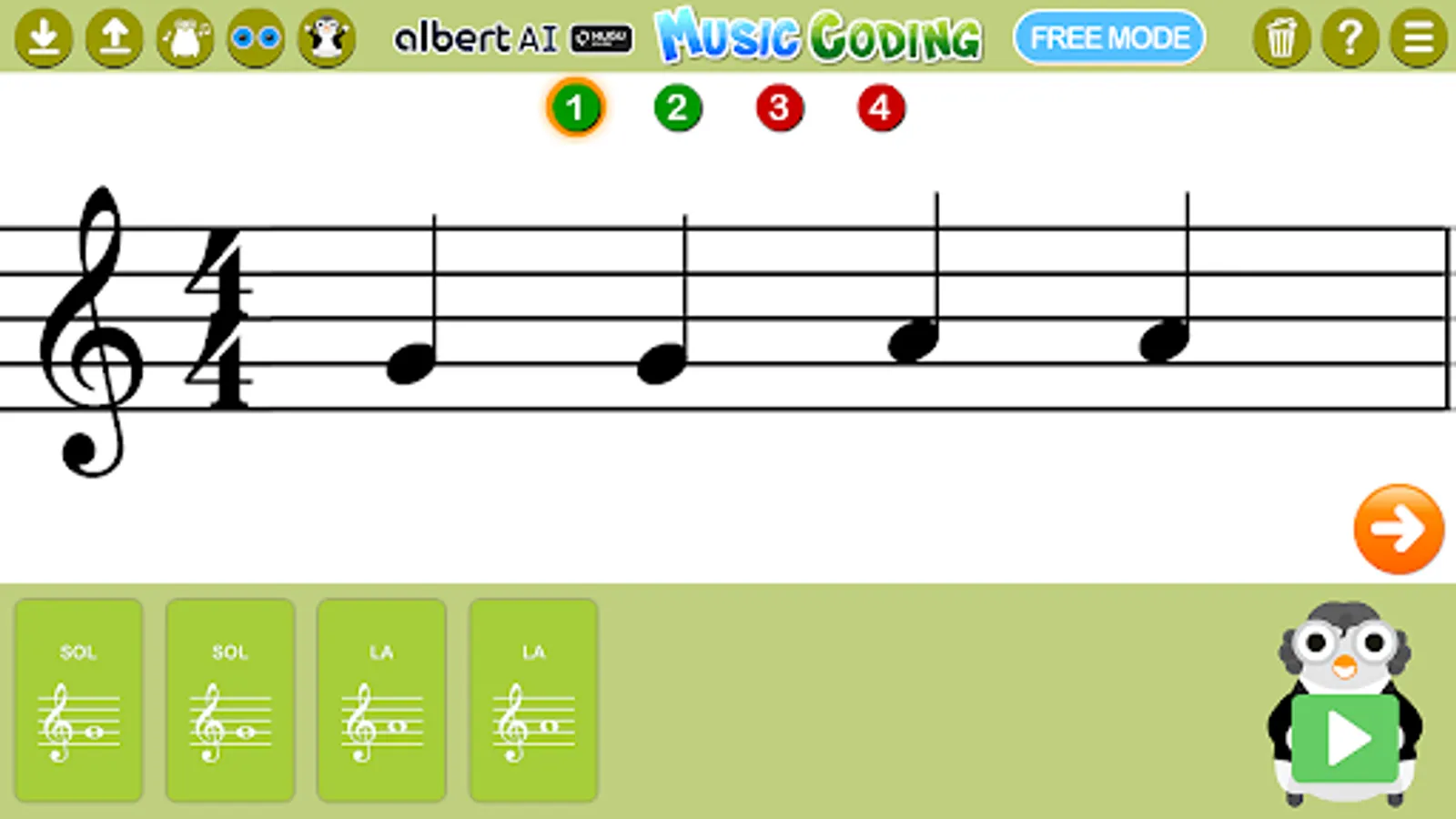 Compose freely using 54 music coding cards such as notes and rests. Complete the sheet music with Albert and Albert will play great music for you. In the process of composing with Albert, you will naturally learn the principles of music and coding.