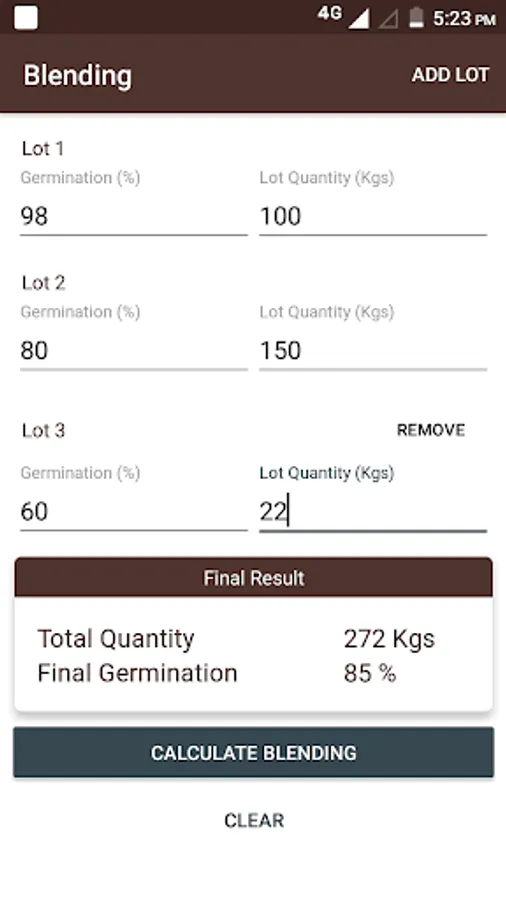 Seed is Basic input in agriculture. Seed should not be wasted as grain unless it is below the prescribed seeds standards. However, Marginal seed lots are about to go below prescribed seed standards could be used as seed only by various techniques viz., seed enhancement treatments, compensatory seed rate and blending with high germination seed lots. Here we have provided instant seed blending calculator according to Karl Pearson square method, by which you can calculate quality of seeds of marginal lots to be blended with high germination seed lots. This can be also used as wine blending calculator.