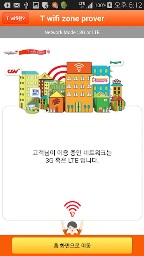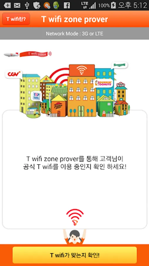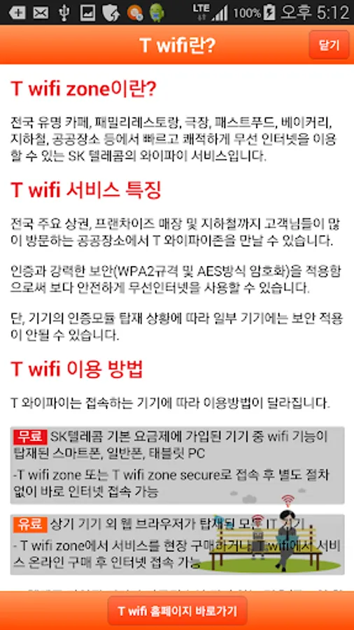 - Check whether the wireless Internet service that is provided by the terminal, connected by 'T wifi zone' SK Telecom