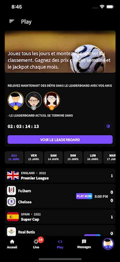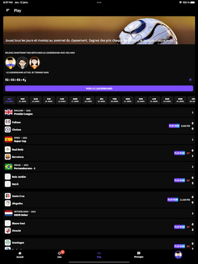 Restez au courant de toutes les dernières actions sportives grâce à SKUAD l'application de scores en direct. Suivez vos équipes et joueurs préférés en temps réel, avec des mises à jour instantanées sur les scores, les statistiques, etc. SKUAD facile à utiliser simplifie les choses pour suivre plusieurs matchs à la fois, et vous pouvez personnaliser votre expérience en définissant des alertes pour vos équipes préférées. Ne manquez jamais un moment de l'action avec SKUAD.