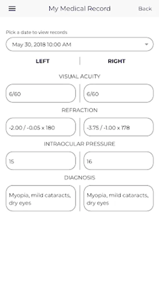 In addition, this application allows patients seen at Asia Retina Eye Surgery Centre to login with a secure password to view their personal profile and summarised medical records including visual acuity, refraction, eye pressure, diagnosis and eye images during each visit to the clinic. This record of their every visit allows them to track their eye progress and be more aware of their own eye condition.