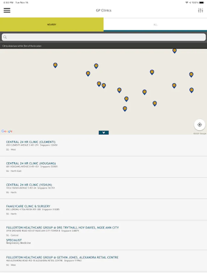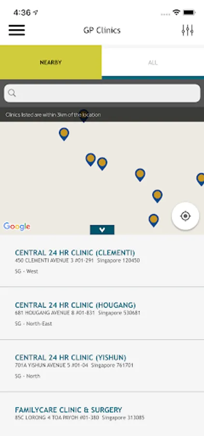 - Search nearby clinic with postal code (eg. Search near your home when you are in the office)