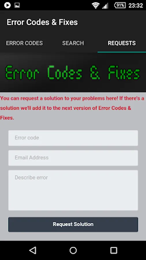 • Request fixes (Send us your error code requests with your issues and we'll try to include the possible fix in the next version.)