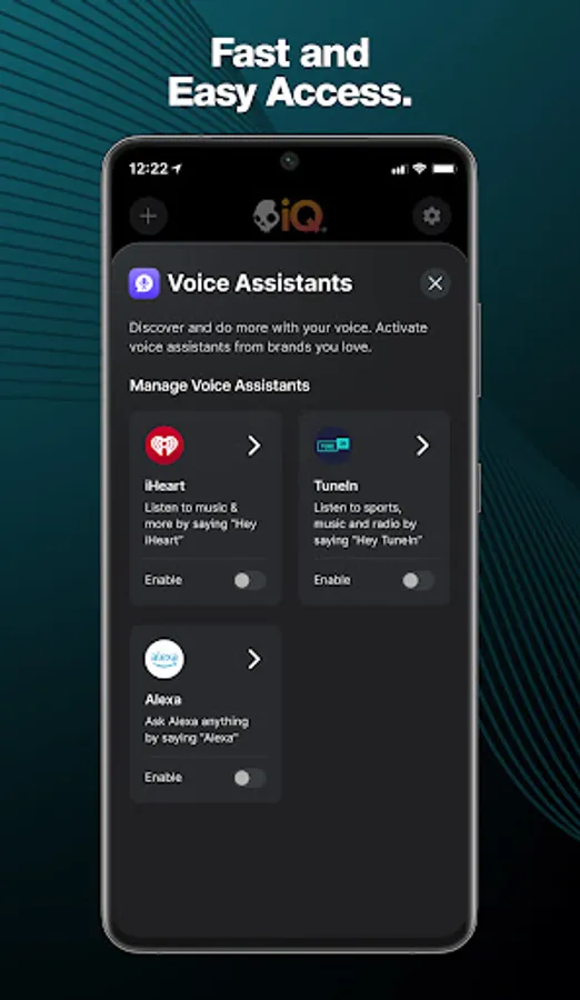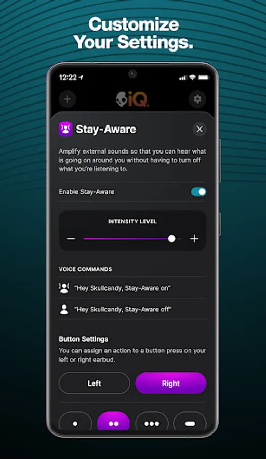 Introducing the Skull-iQ App – The exclusive app for Skullcandy products featuring Smart Feature Technology. Download the app to experience everything that Skull-iQ offers, including the ability to download new features when they become available. The Skull-iQ App gives users complete control over features such as: