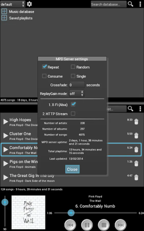 MPDMan allows full control of all your MPD servers from your mobile phone or tablet. MPDMan acts as a remote control for MPD.