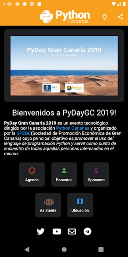 PyDay Gran Canaria 2019 is a technological event organized by the Python Canarias association whose main objective is to promote the use of the Python programming language and serve as a meeting point for all those interested in it.