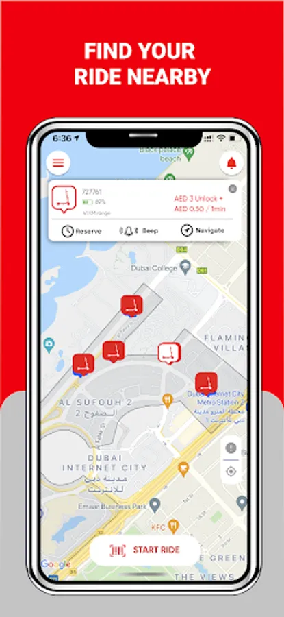 • Navigate to get to nearby e-scooter