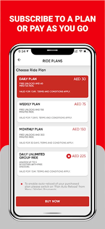 • Ride plans options