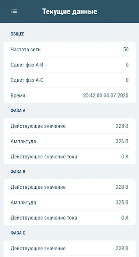 Performs the functions of a recorder of the main characteristics of a 3-phase network.