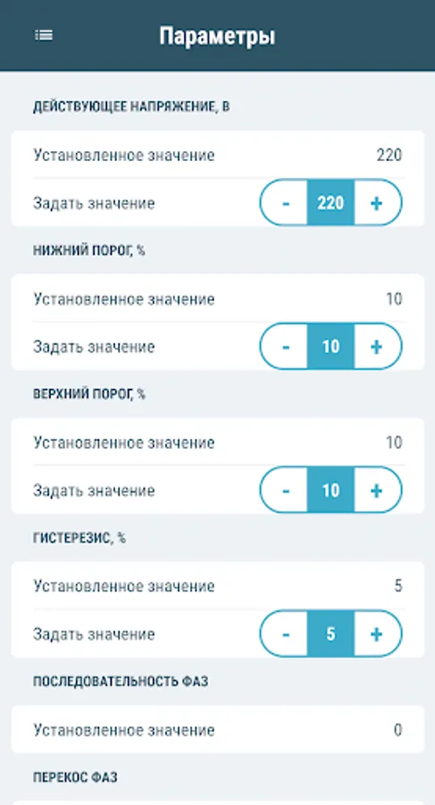 - Application program for a smartphone or tablet, which allows you to read data from the recorder and manage relay settings via a wireless interface.