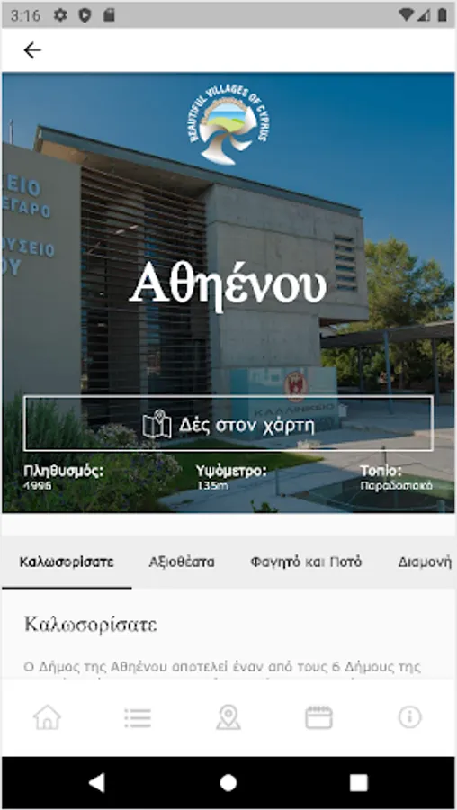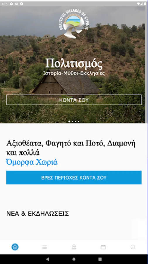 Through the BeautyVill CY application you can discover the most beautiful places to visit and stay, which are located in the members of the Network of "Beautiful Villages of Cyprus" and to be informed about their history, their culture and their culture.
