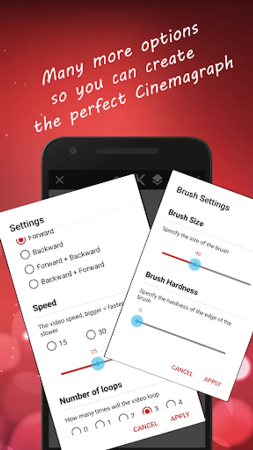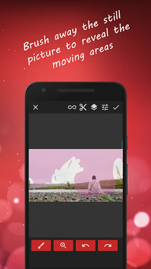 Create your cinemagraph in real-time with magical "live-masking" that reveals motion as you paint over the still image, or restore it by switching to eraser brush.