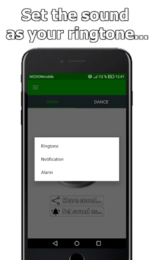 -Set the sound as ringtone, alarmtone and notificationtone.
