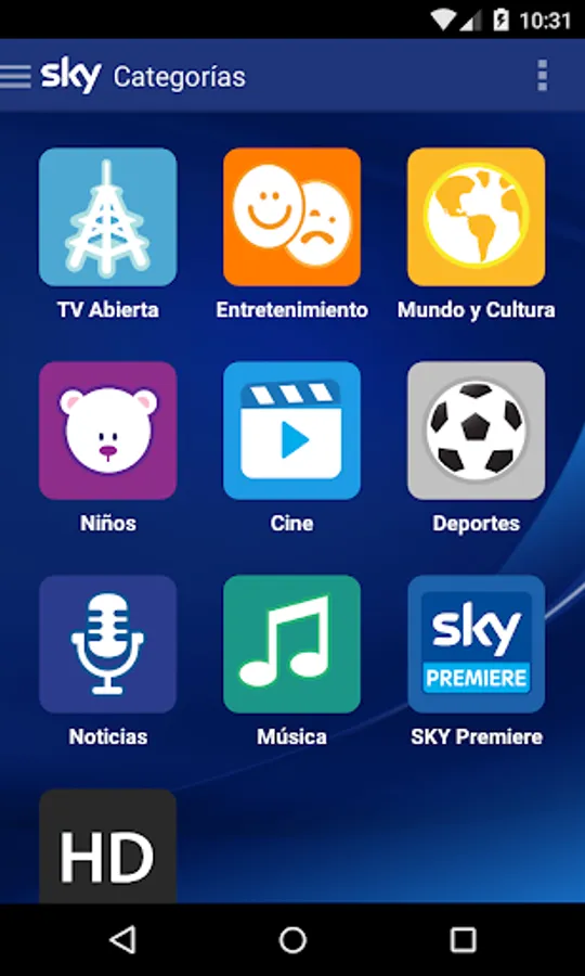 To enjoy the experience of the mosaics you know, in the categories gives you an organized way programming your favorite channels HD genres, Film, Sports, Entertainment, Music, World and Culture, National, Kids and News.