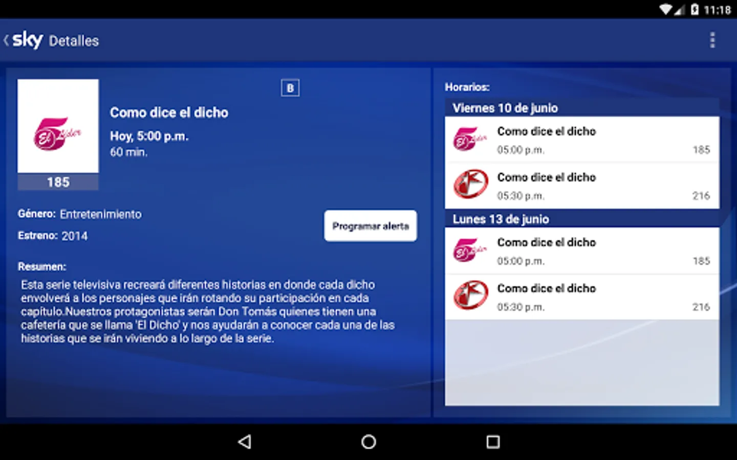 This application allows you to access the program guide SKY from your device up to three days in advance as it contains the complete list of SKY channels where you can easily find them by number or by name.