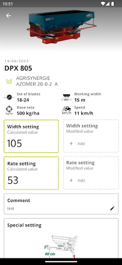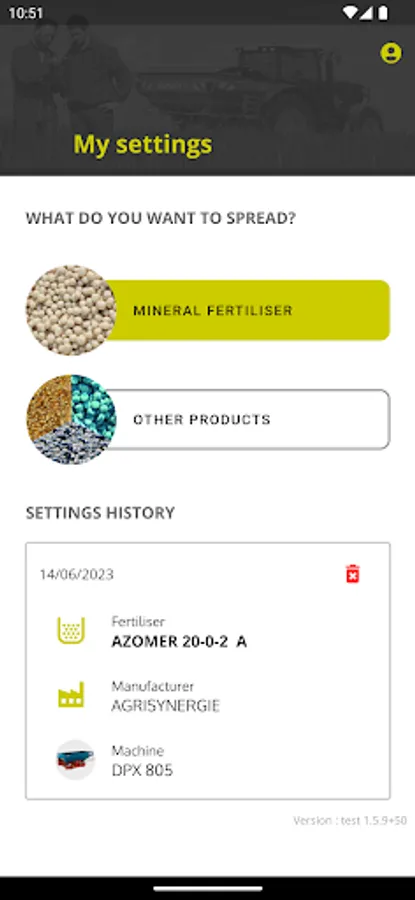 It is an assistance tool for properly adjusting your SKY fertilizer distributor. The "FERTITEST" app is available 24 hours a day and can be accessed without being connected to the internet. The app is accessible after creating an account in order to provide personalized service and allow the user to memorize their settings. The user can provide feedback to better take into account the conditions of use of the machine