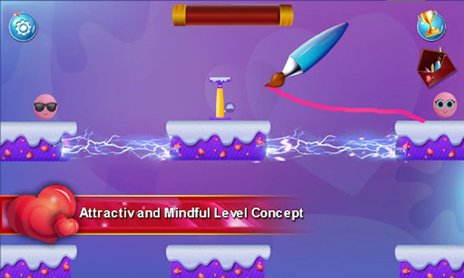 Do you really believe in love? If yes then help and let the Love balls meet each other. Happy Couple Balls Game is one of the best problem solving game which will baffle your mind to find a way to meet boy ball with his girlfriend ball. It is really strategic, exciting and funny casual game. The game rule is very simple, just you need to draw lines or shapes to bump the balls. In this game make your own imagination before drawing the shapes or lines or anything to meet ball. Happy Couple Balls Draw Game is a brain teaser physics based game with challenging and entertaining levels which will improve your analytical skills.
