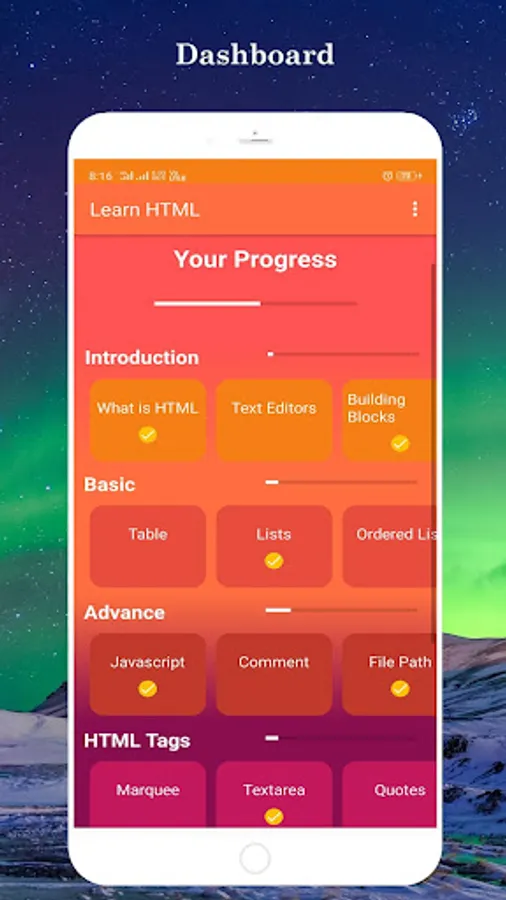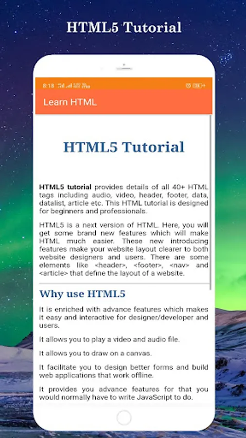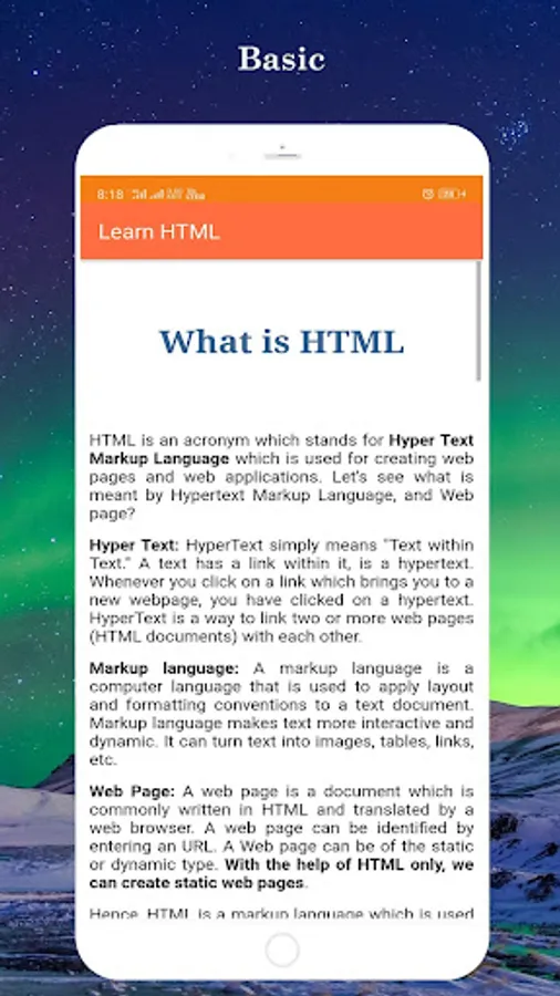 If you are searching for an application to learn HTML programming basic to advance without any programming knowledge . You are at right place. Whether you an experienced programmer or not , this application is intended for everyone who wish to learn the HTML programming.