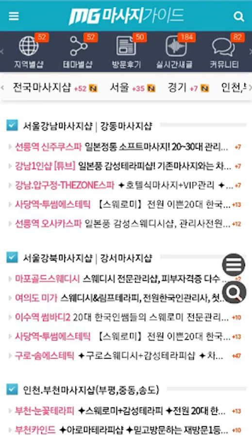 Gangnam, Gangbuk, Gangseo, Gangdong, Ilsan, Suwon, Anyang, Bundang, Ansan, Bucheon, etc.