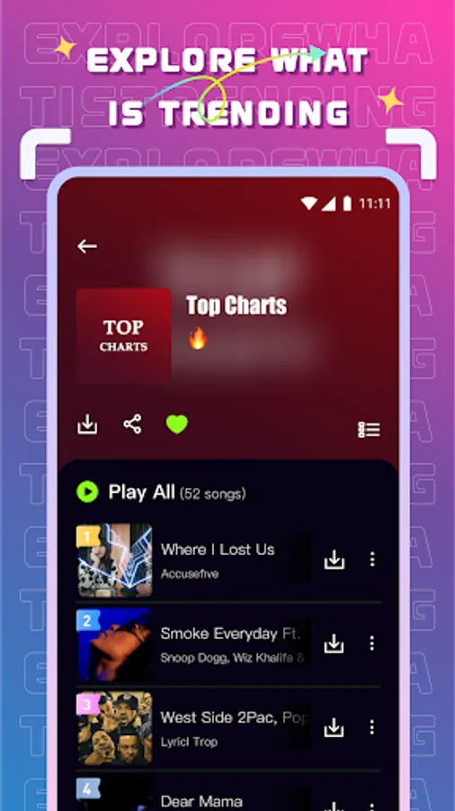 Stay updated on new trending songs and top rankings. Keep up with your favorite sound and genre with the discovery feature of the music player.