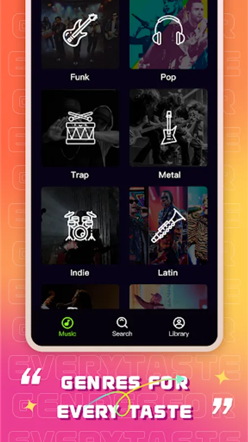 With tons of different genres, moods, and other trending song categories to play: Pop, Rock, Rap, RnB, Latin, Dubstep, Drum, Electronic, etc.