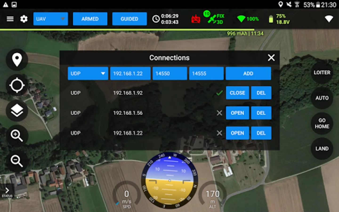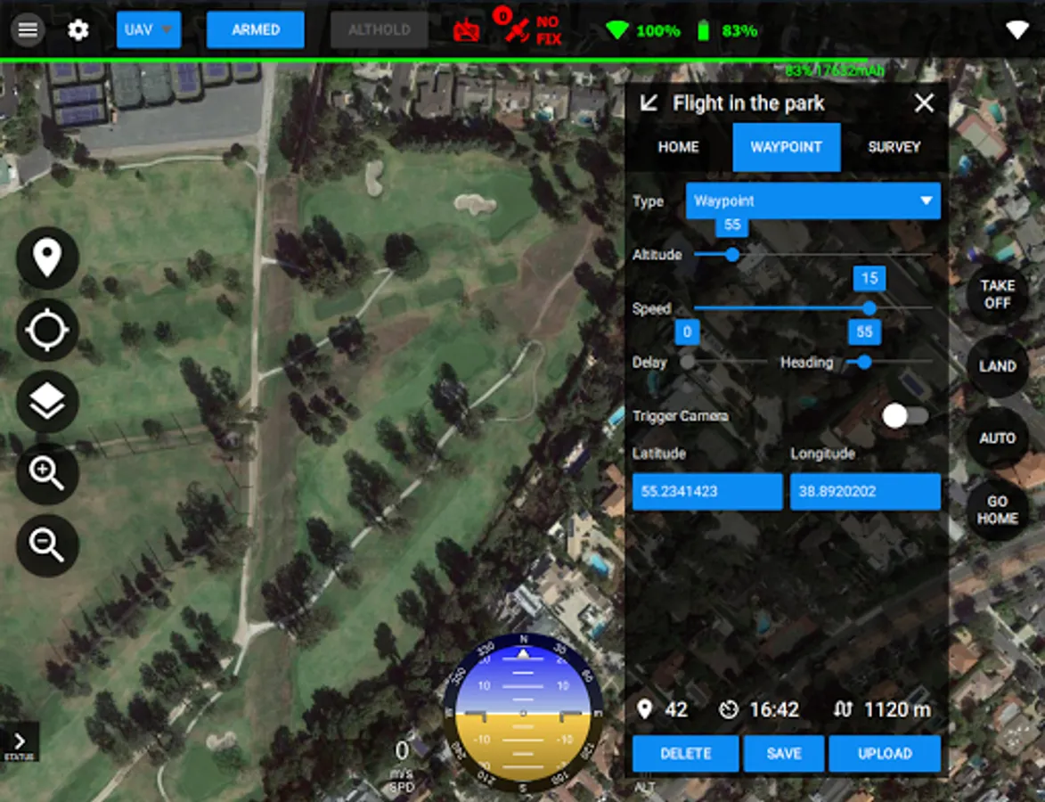Monitor various flight parameters of the system and adjust the plan during the mission. In case something is not right SmartAP GCS will automatically notify you and suggest the available actions. Real-time video feed is integrated right in the app.