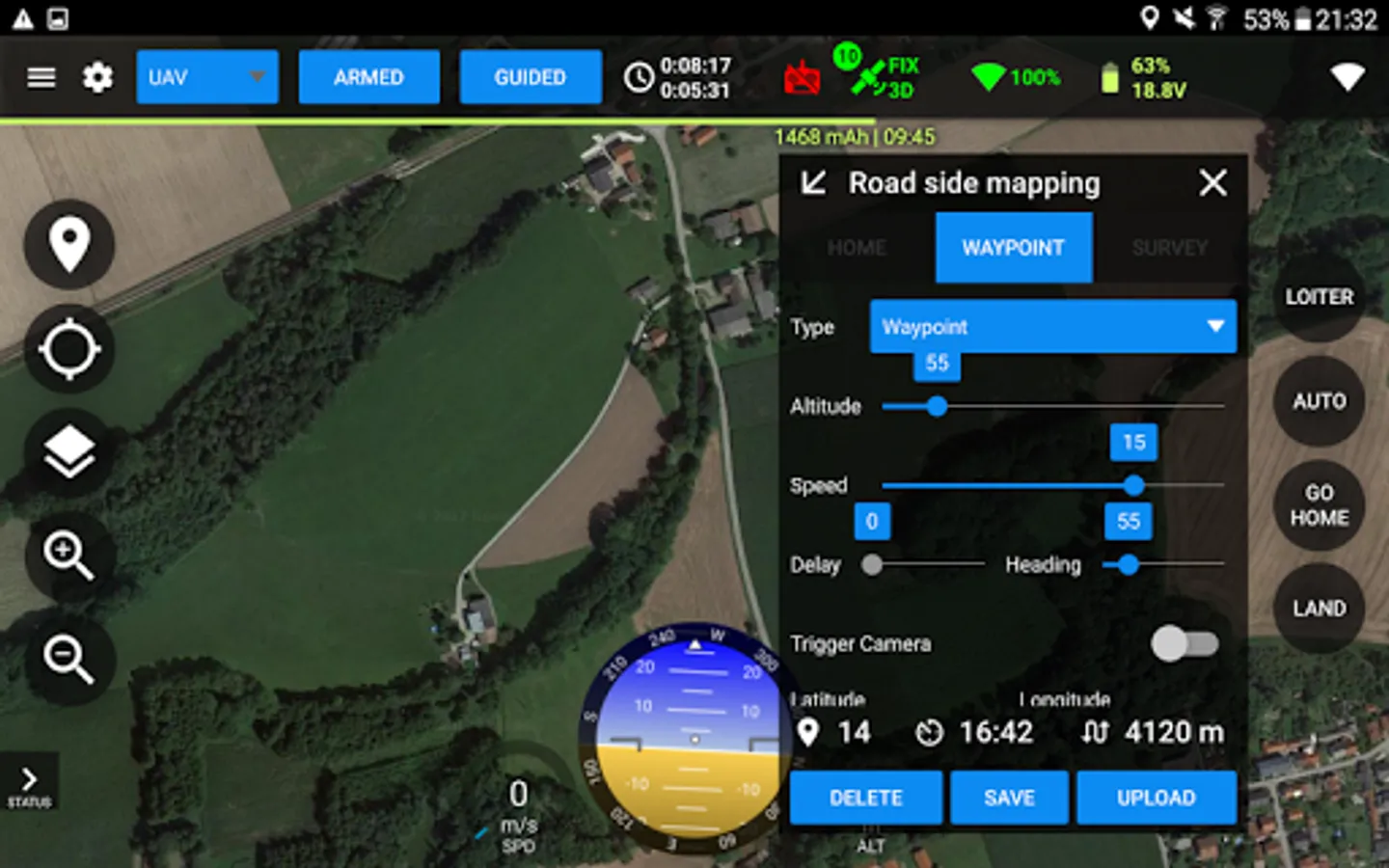 Creating the flight plan has never been easier - simply tap and drag&drop to place the waypoints and adjust various mission parameters. Intuitive planning interface allows you generating complex missions with no efforts.