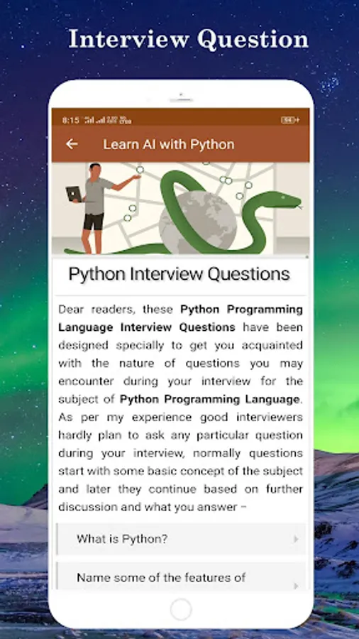 This also useful for learning python programming language. In this app provided many useful real life example of python programming language, AI with python interview question and answer and also provided python compiler.