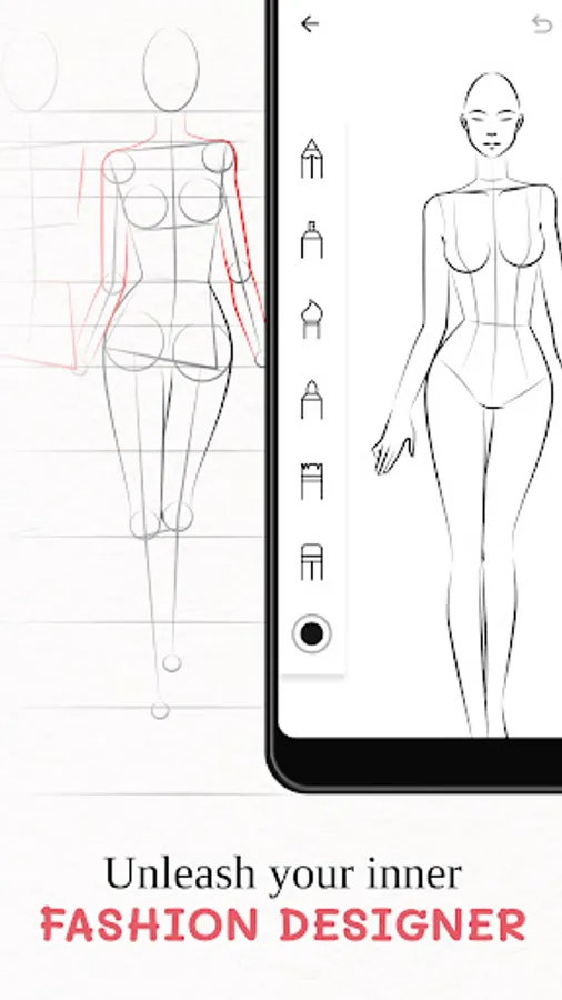 The app also offers a multitude of drawing tools, from pencils to brushes, ensuring that each stroke captures the essence of the fashion figure.