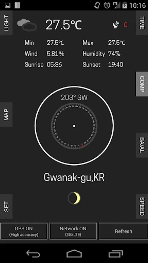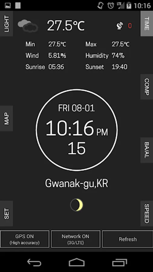 ☆ ★ This app provides the functions of the watch, Compass, Barometer / altimeter, speedometer, flash, moon phase and a weather information.
