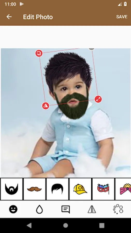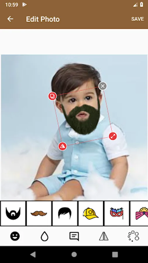 You can also select any one beard which you like to add in your face photo and you can also change the size of that beard with finger touch.