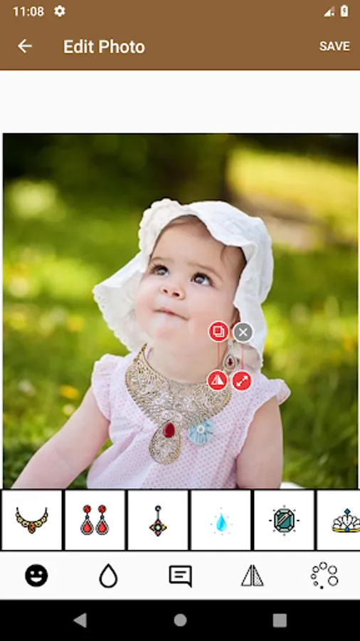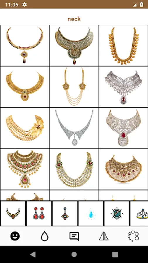 Jewellery photo editor app will help you to pickup various jewellery item like necklace set, earring, diamond jewellery set, diamond and gold jewellery set from the collection.