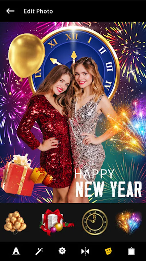 - Two finger gestures to zoom your photo and adjust in the new year photo frames.