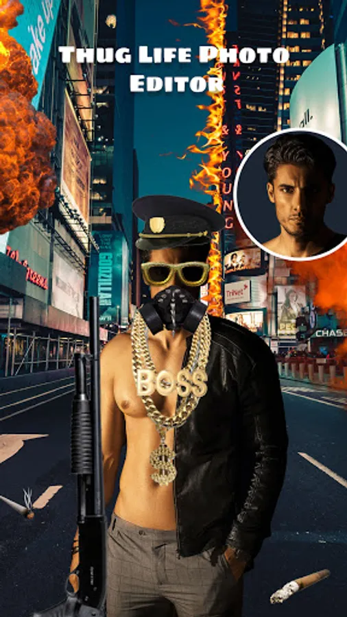 Thug Life Photo Maker Editor let's you make crime gangster picture and thugLife photo montage with guns, weapons and gangster stuff to share with your friends.