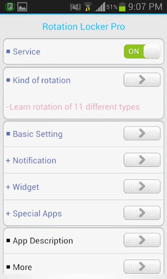 - Basic Rotation(1~4) - General mode and does not override the settings app