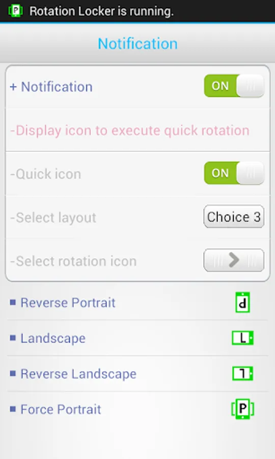 - Force Rotation(6~11) - It rotate entire screen of device. So can rotate All app.