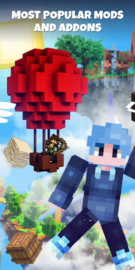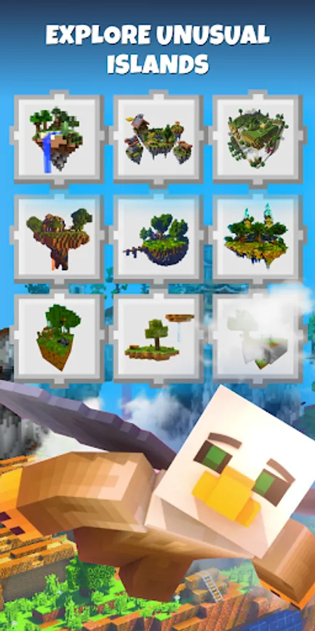 Skyblock Mods for Minecraft is an application that contains a set of cool mods for fans of experimental gameplay on islands in the middle of the sky and hardcore adventurers. Popular Skyblock maps and mods will help you enjoy the exploration of flying islands in survival mode. Incredible updates and a collection of additional weapons and equipment considerably enhance the gameplay and make the movements colorful and varied. Add new instruments and feel invincible.