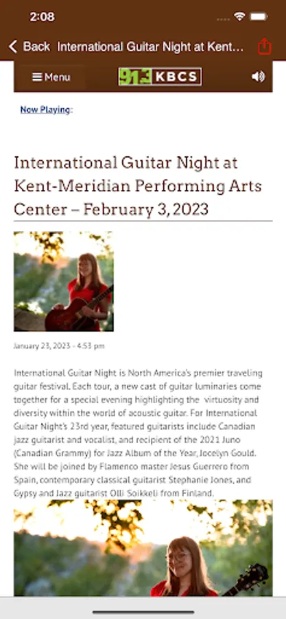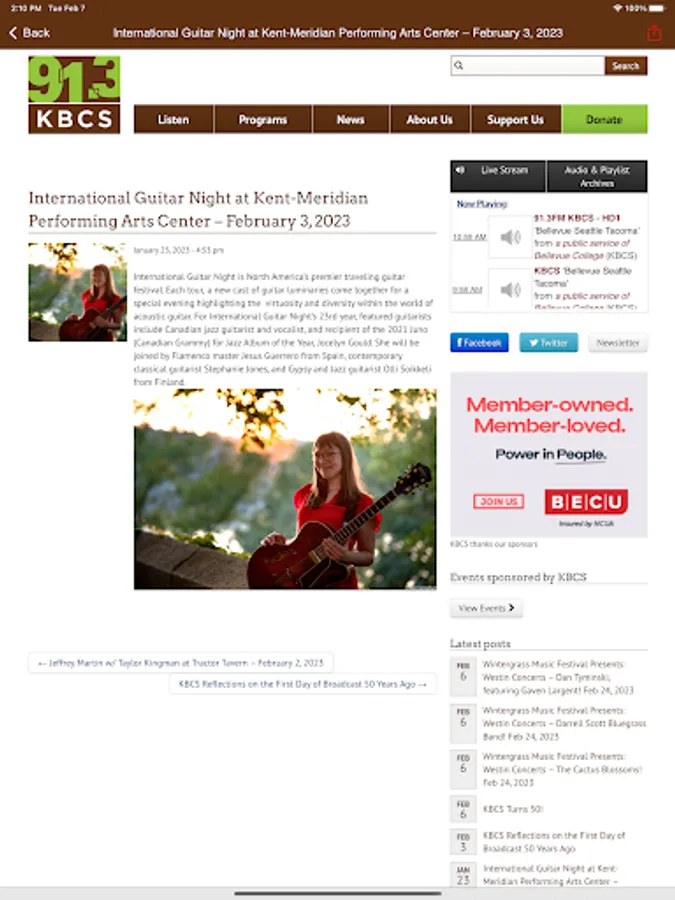 • The KBCS Public Radio App displays the web page associated with the program or program segment you are listening to On Demand so you can explore for more information.